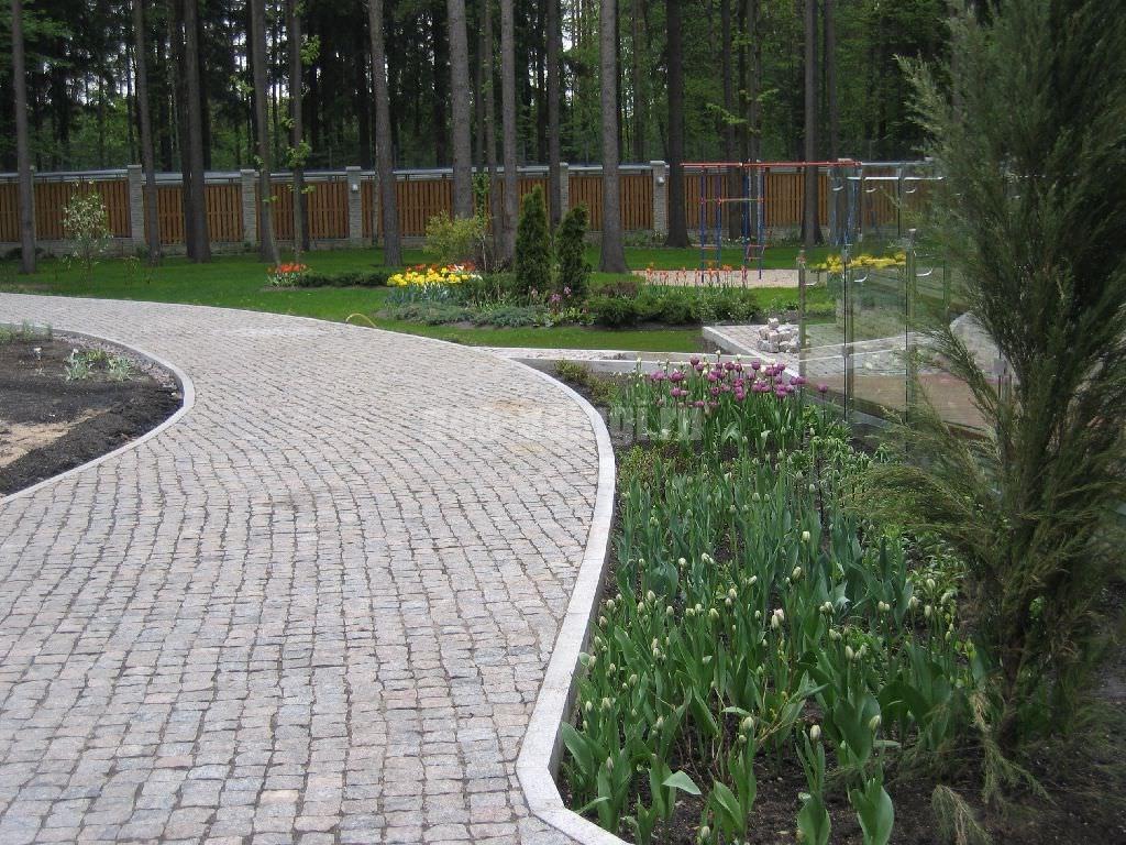 Бордюр — неотъемлемая часть дизайна. Он придает дорожке структуру и завершенность. Выберите форму и материал, который сочетается с брусчаткой.