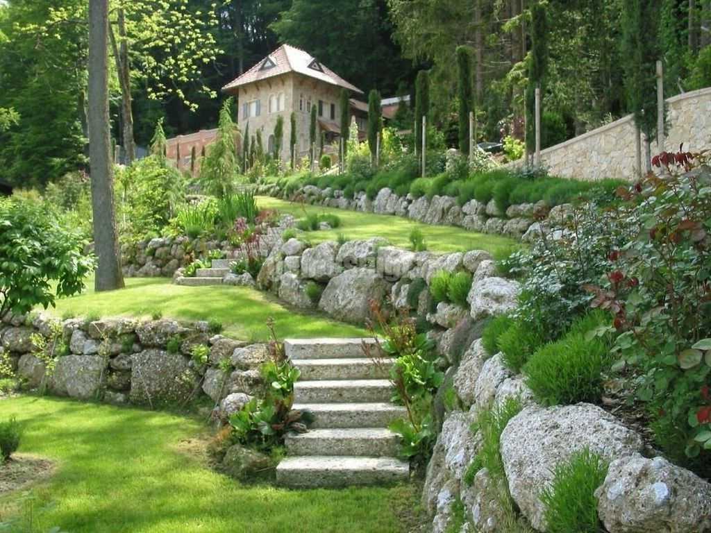 Террасирование участка: Создайте террасы на участке, чтобы разделить его на уровни и упростить уход за растениями.