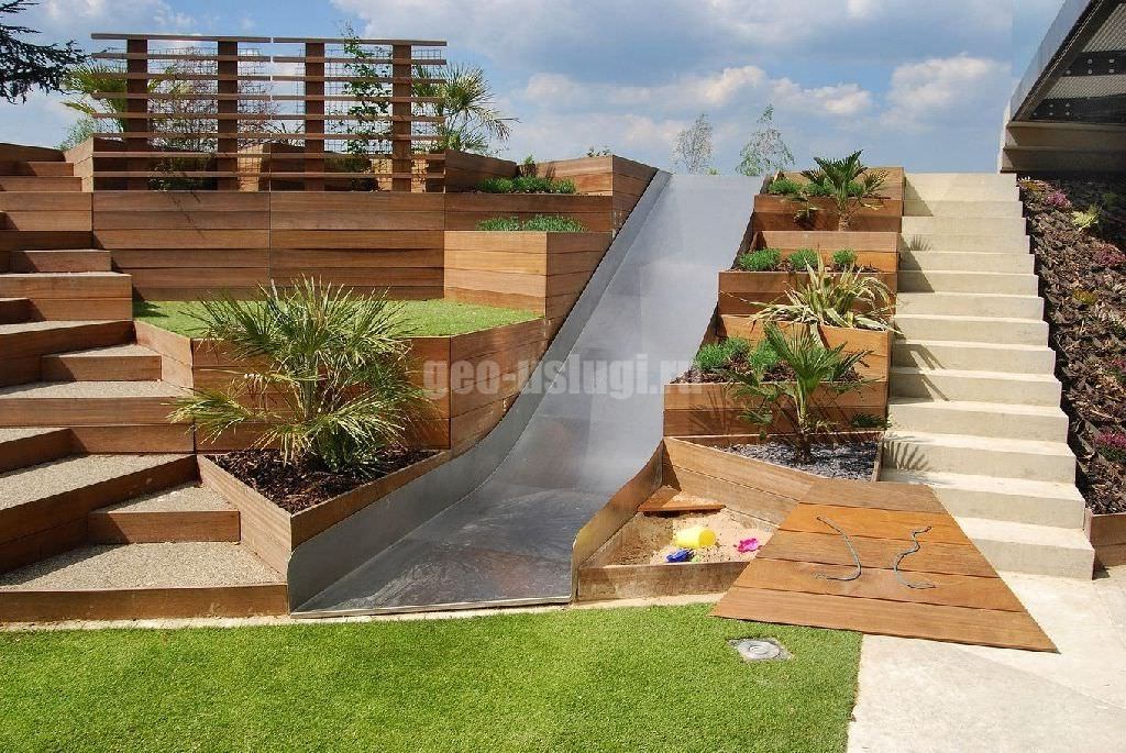 Работа с рельефом: Уклон участка можно использовать в своих интересах, создавая разные уровни и зоны отдыха.