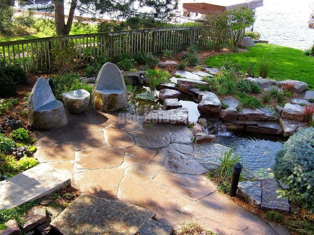 Водоем с камнями – это место, где сливаются эстетика и звуки природы. Разместите каменные элементы на дне пруда, создавая уютные уголки для водных растений и рыбок. Каменные бортики пруда добавят нотку природного шарма.