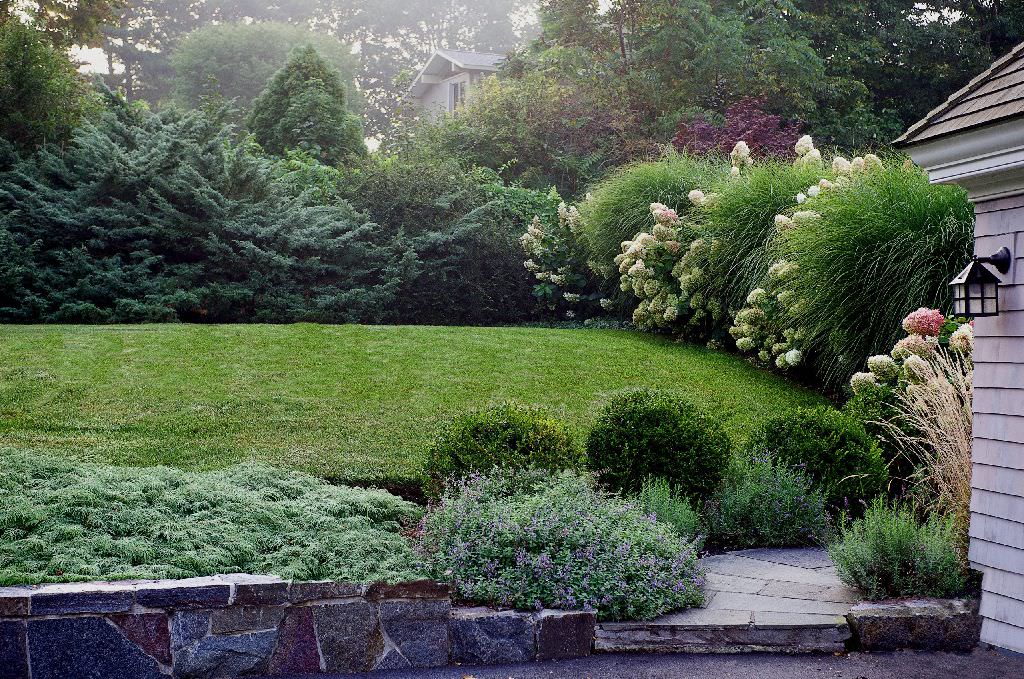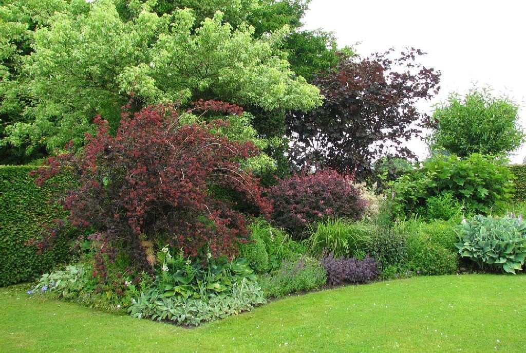 Кустарниковые куртины создают объемные и структурированные композиции. Они могут включать различные виды кустарников, которые добавляют саду текстуру и глубину. Примеры кустарников: