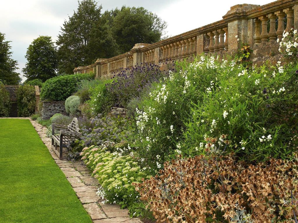 В классическом стиле куртины часто используют симметричные и строго упорядоченные посадки. Цветы и кустарники выбираются в спокойных тонах, таких как белый, розовый, голубой. Примеры растений: