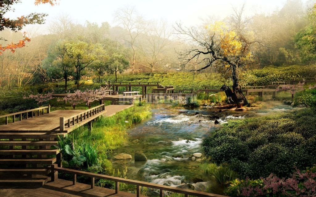 Китайский ландшафтный дизайн тесно связан с философией ци, стремящейся к гармонии и балансу во всем. Это отражено в использовании символов воды, камня, растений и других элементов, создающих гармоничное единство.