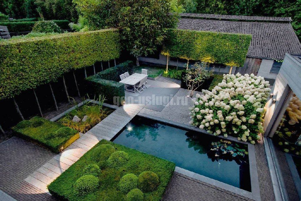 Хай-тек предпочитает геометрические формы и четкие линии. Выразительные контуры и симметричные композиции придают современный вид саду. Элементы ландшафта, такие как геометрические пруды или декоративные стены, могут быть великолепно интегрированы для достижения желаемого эффекта.