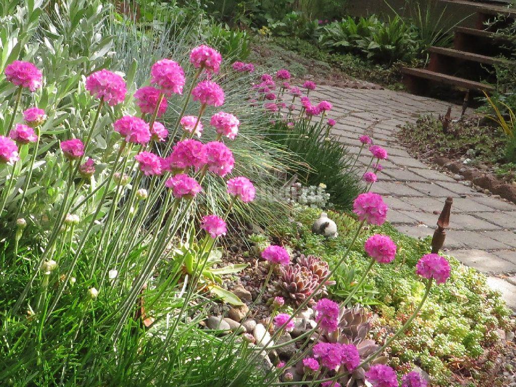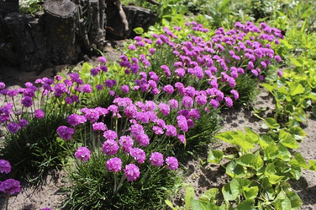 Армерию часто используют для создания бордюров вдоль дорожек или цветников. Её кустики образуют плотную зелёную полосу, которая сохраняет декоративность на протяжении всего года. Цветущая армерия добавит бордюру яркие акценты.