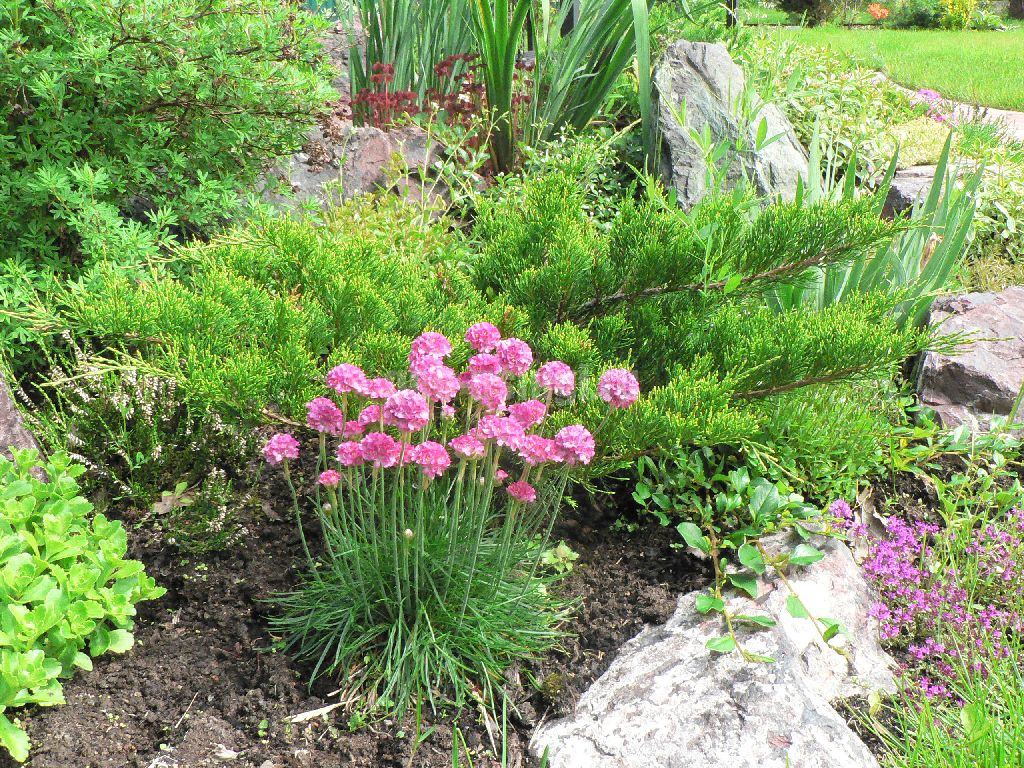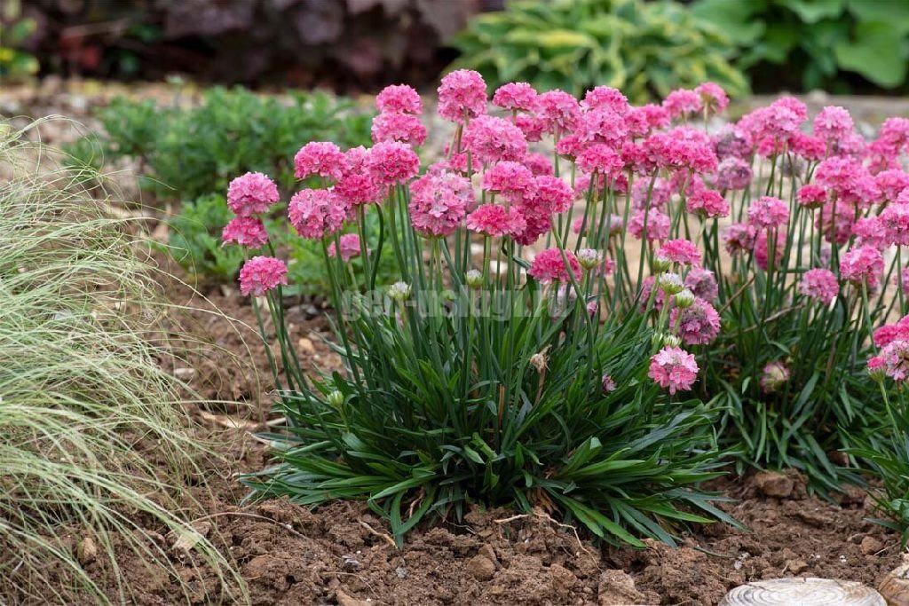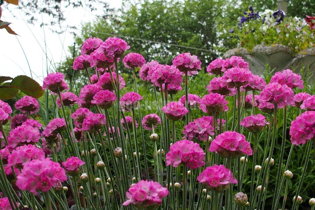 Армерия хорошо сочетается с другими декоративными растениями благодаря своей яркой, но не агрессивной окраске. Она может стать как фоном, так и центральным элементом композиции.