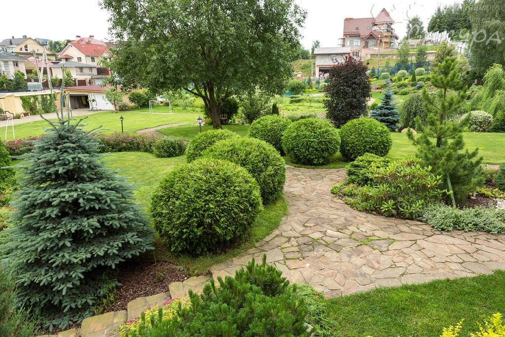 Шаровидная туя отлично подходит для создания живых изгородей и бордюров. Она позволяет создать четкие границы участка или отдельных зон, при этом не занимая много места.
