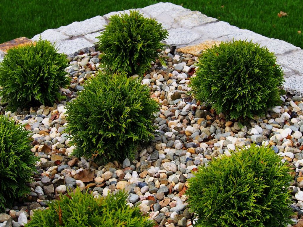 На альпийских горках и в рокариях шаровидные туи выглядят особенно привлекательно. Они гармонично вписываются в композиции с камнями, подчеркивая их природную красоту.