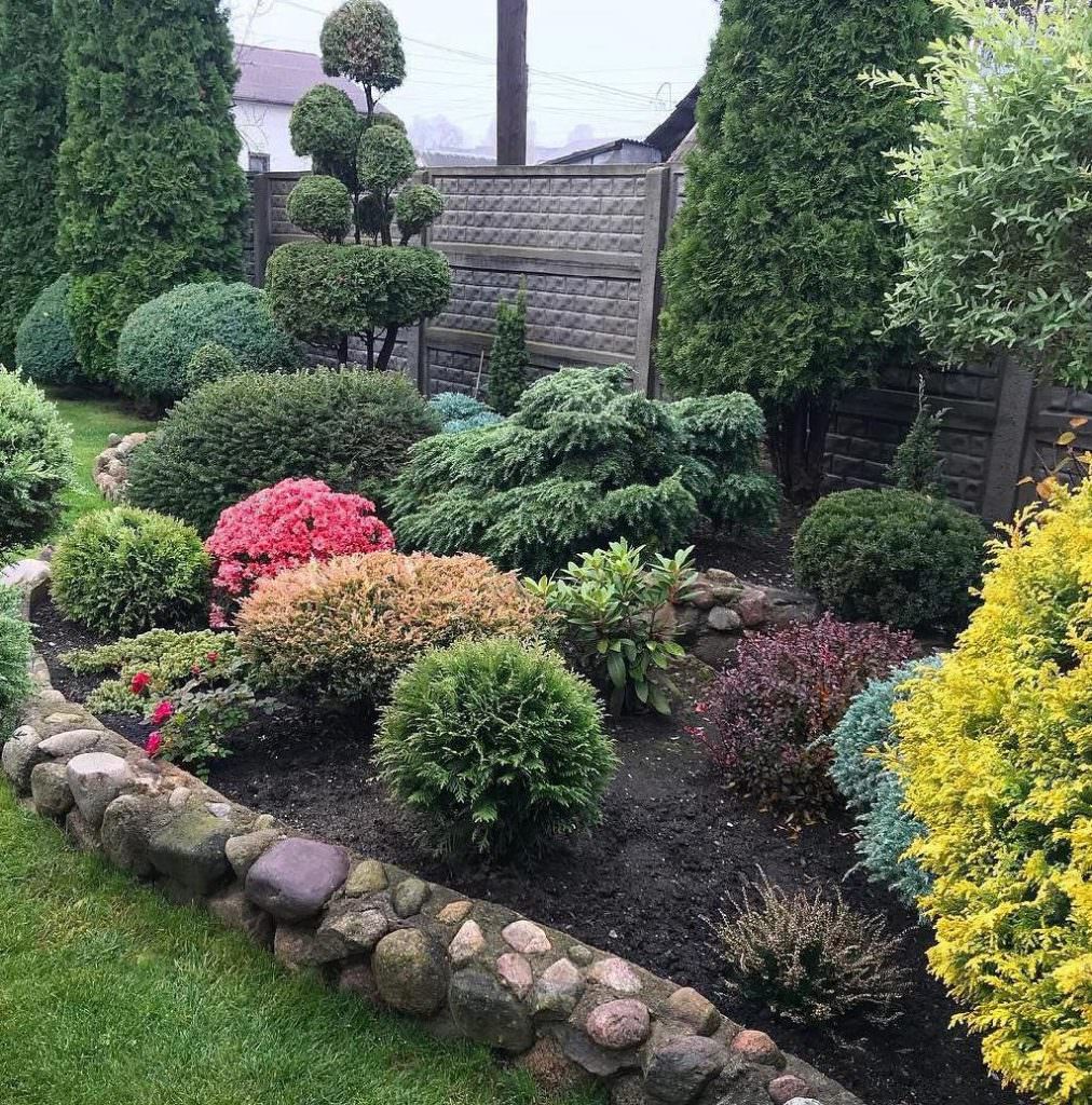 В миксбордерах шаровидная туя может стать прекрасным дополнением к другим растениям. Ее зеленая хвоя создает контраст с яркими цветами, добавляя композиции глубину и объем.