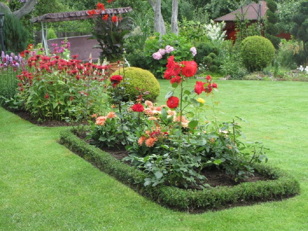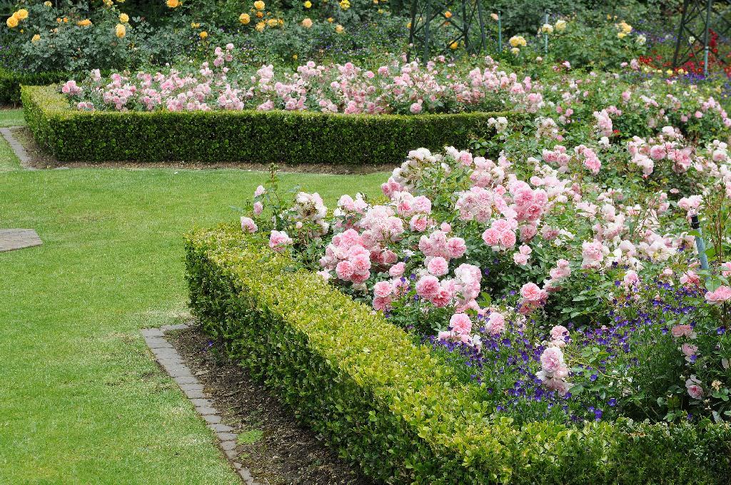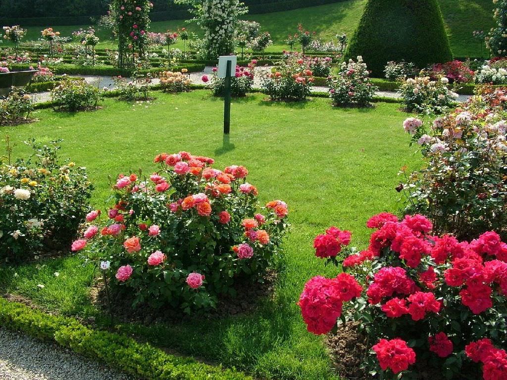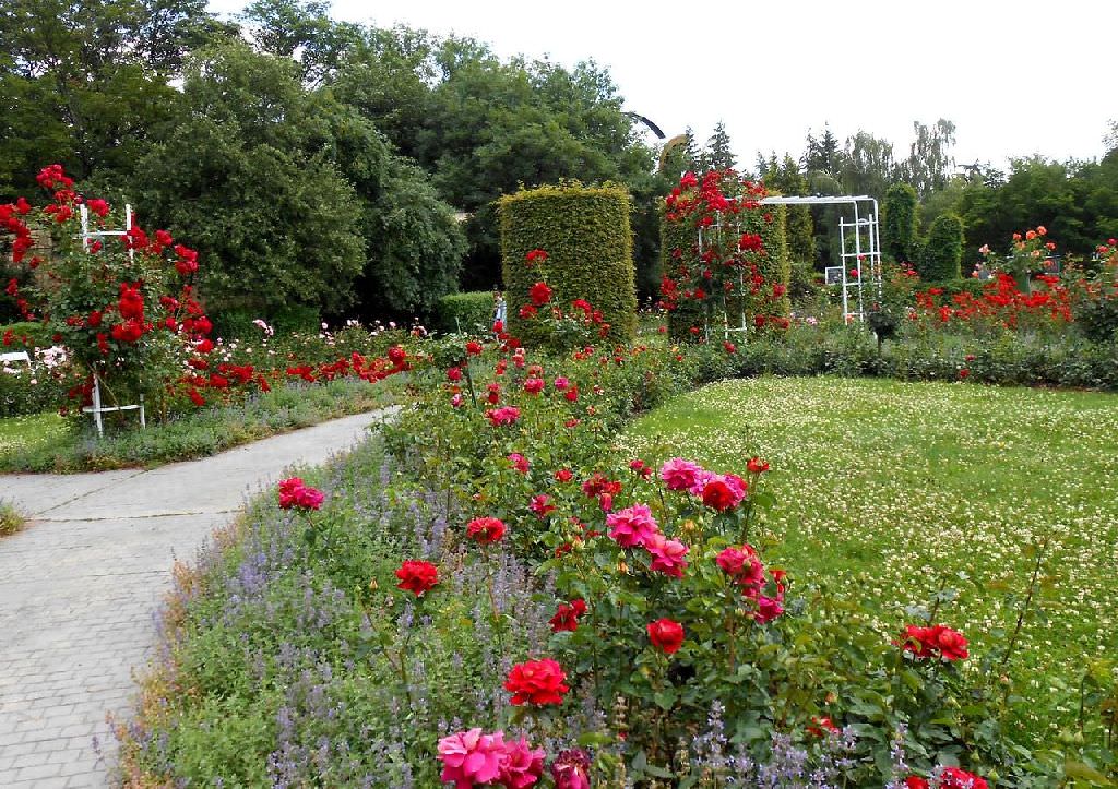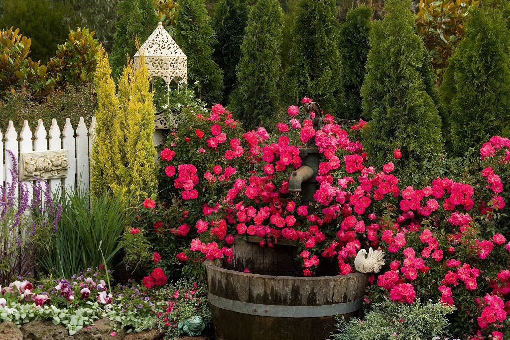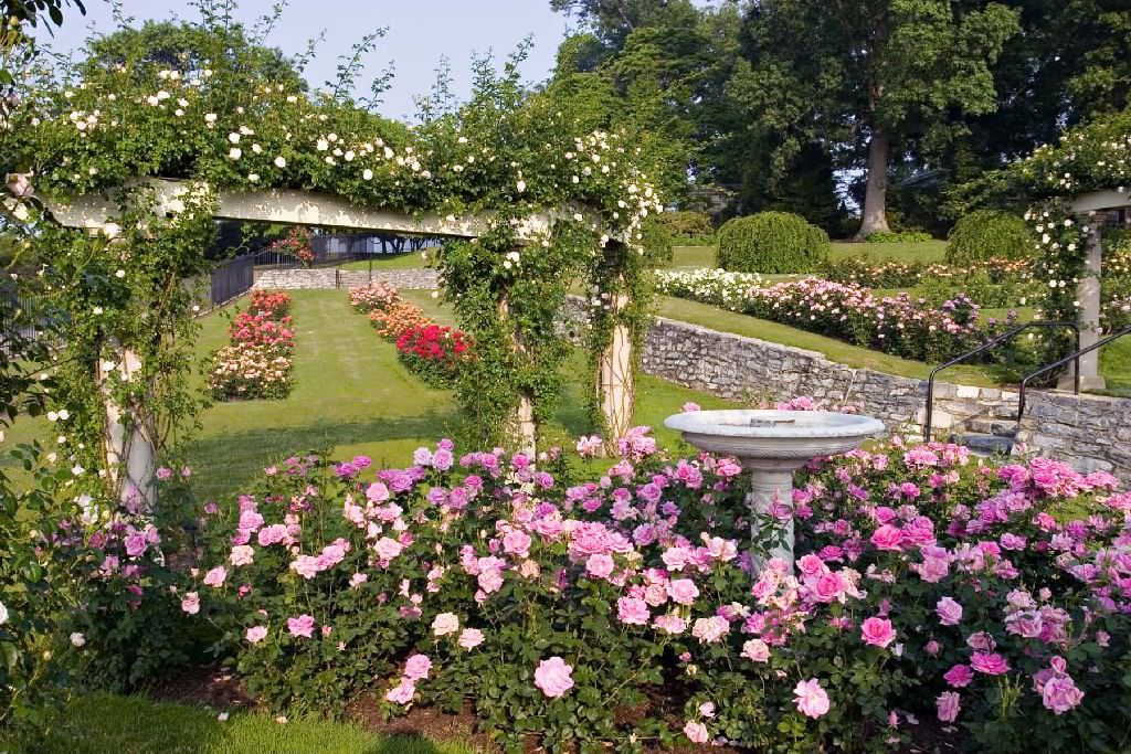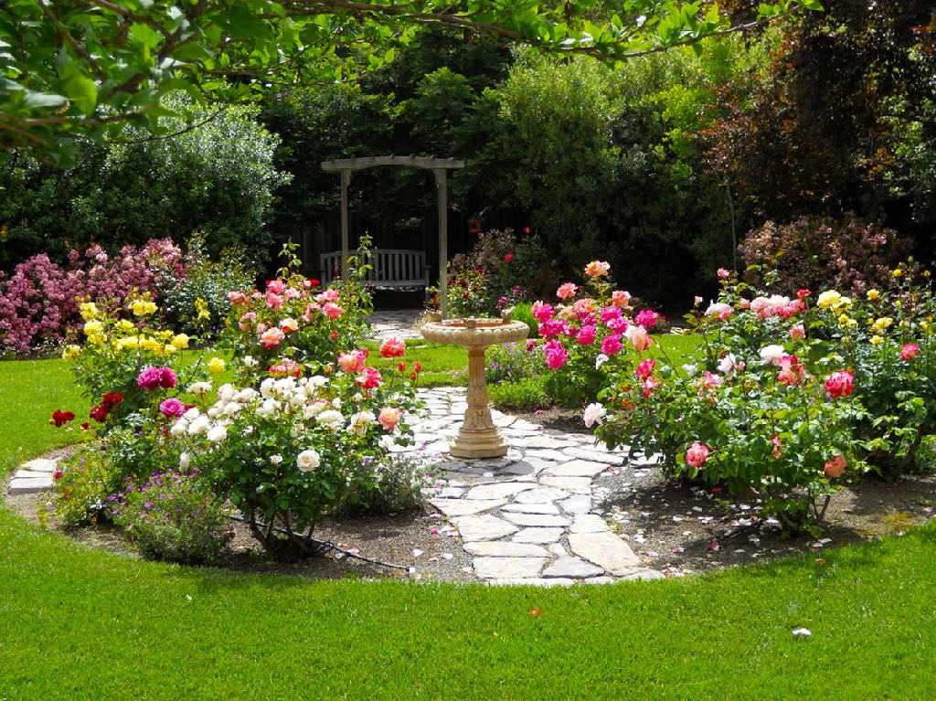 Розарий может быть не только самостоятельной зоной, но и частью общего ландшафтного дизайна. Хорошо смотрятся розы в сочетании с другими декоративными растениями: