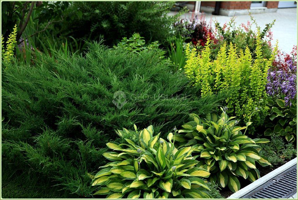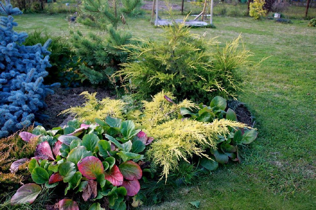 Можжевельник отлично смотрится в сочетании с другими растениями, что позволяет создавать живописные композиции. Вот несколько удачных комбинаций: