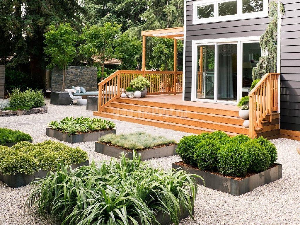 Дерево играет важную роль в скандинавском дизайне участка. Используйте его для создания мебели, площадок и декоративных элементов. Камень и металл добавят нотки сдержанного лоска.