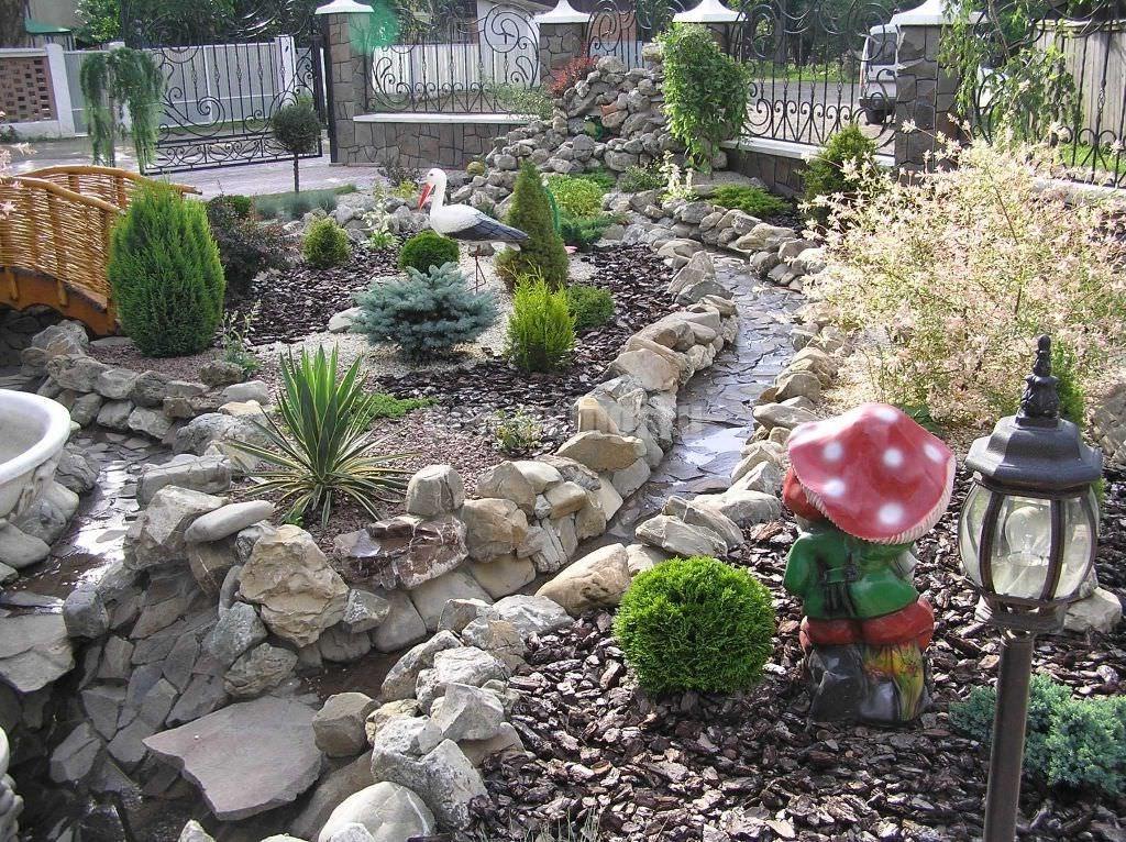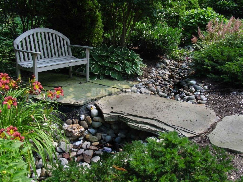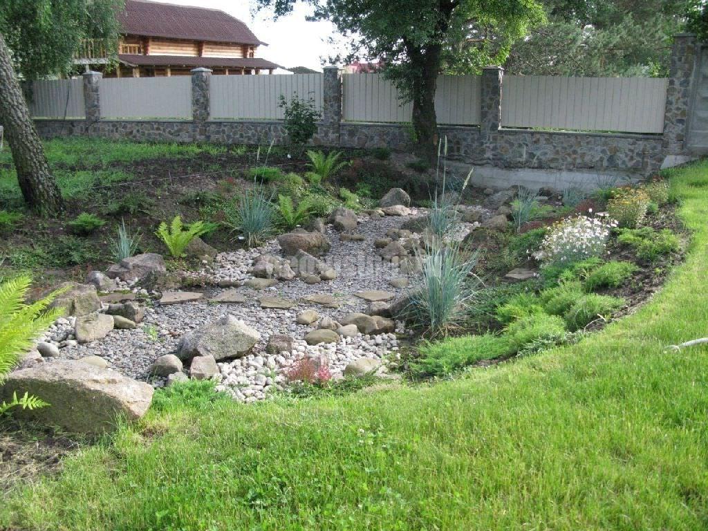 Декоративные камни, светильники или даже мостик могут стать украшением сухого ручья, делая его более привлекательным и функциональным.