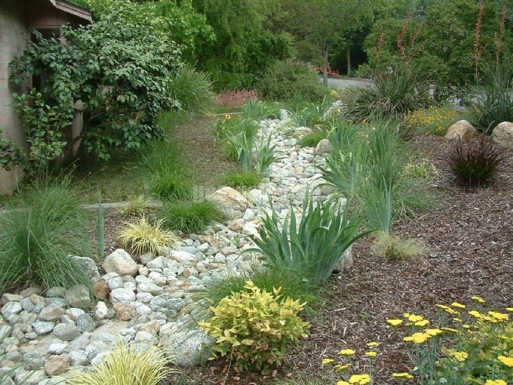 В регионах с недостатком воды сухие ручьи становятся идеальным решением для создания водных элементов в саду без риска иссушения ресурсов. Они позволяют сохранять визуальный эффект воды, не используя её фактически.