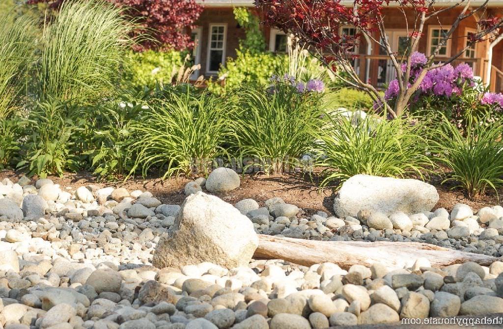 Чтобы усилить естественность сухого ручья, добавьте вокруг него растения, поддерживающие идею водного пространства. Гибискус, бамбук и орнаментальная трава отлично вписываются в такие проекты.