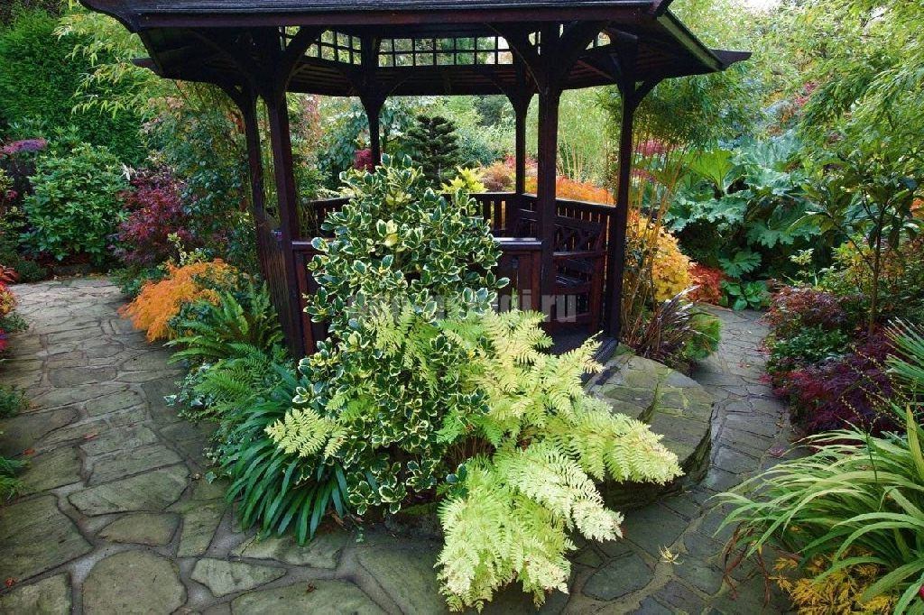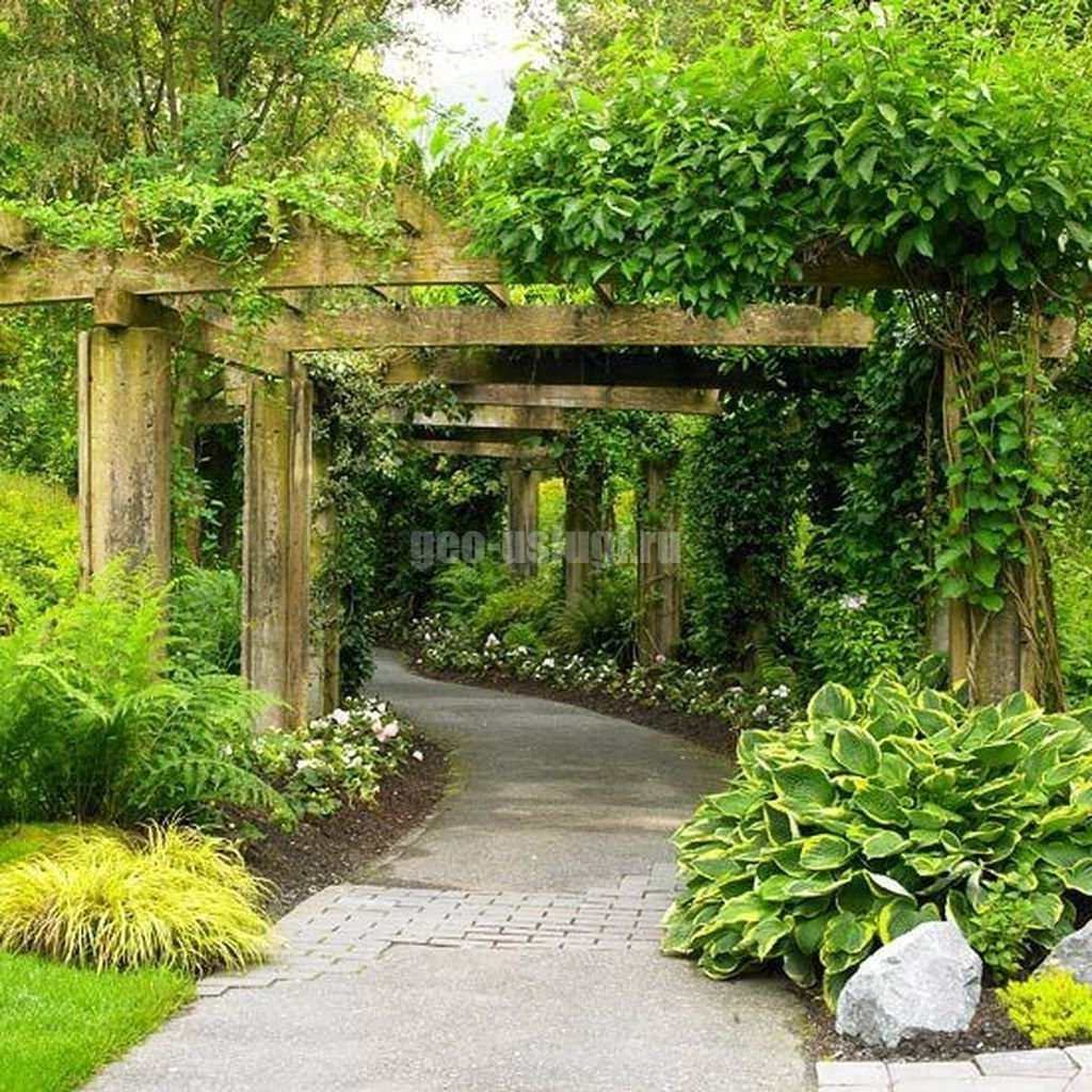 В природном стиле не может быть избытка бетона и пластика. Используйте камень для создания натуральных дорожек и площадок. Добавьте элементы из дерева — столики, скамейки, арки. Это придаст вашему участку природную текстуру и теплоту.
