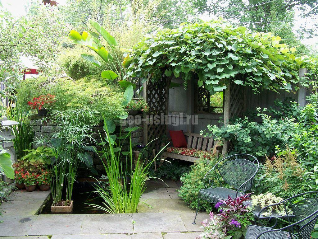 Разместите скамейки и площадки так, чтобы они были спрятаны среди зелени. Это создаст уединенные уголки для отдыха, где можно наслаждаться природой и покоем.