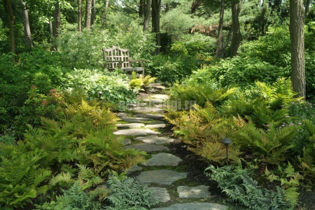 Забудьте о слишком прямых линиях и геометрии. В природном стиле важны мягкие изгибы и органические формы. Даже дорожки могут быть плавными и извилистыми, напоминая тропинки в лесу.