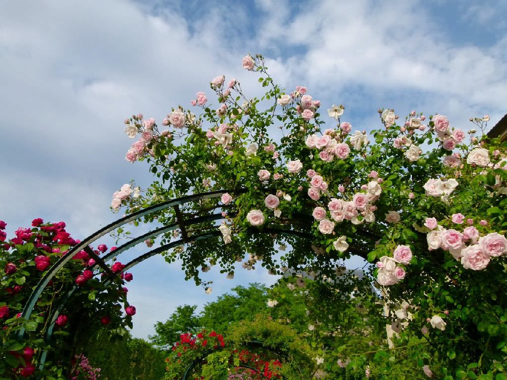 Разместите розы на шпалерах вдоль границ участка или клумб, чтобы создать красивые фоновые композиции. Это подчеркнет красоту других растений и добавит саду завершенность.