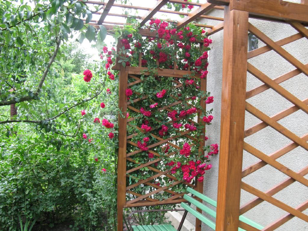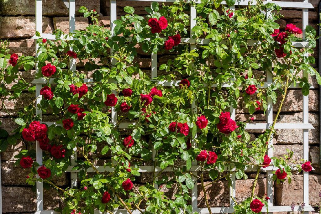 Розы на шпалерах легче обрезать и поддерживать в хорошем состоянии. Благодаря вертикальному расположению, вам не придется нагибаться или карабкаться по кустам, чтобы добраться до нужных ветвей.