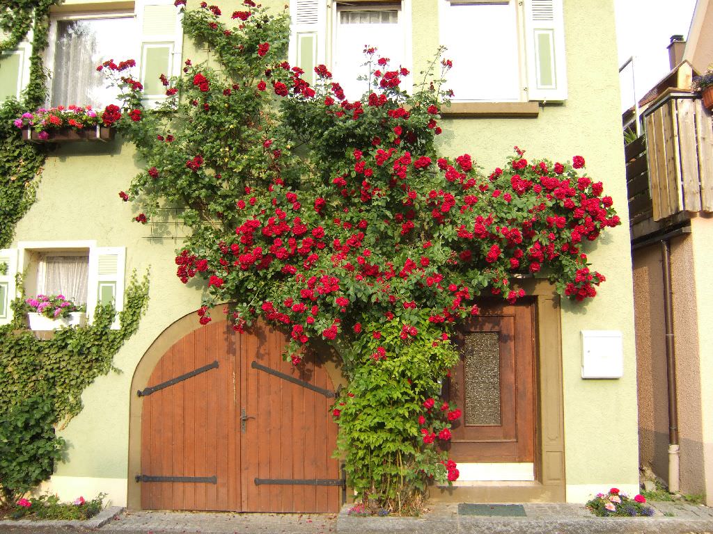Розы, растущие на шпалерах, создают потрясающий визуальный эффект. Вертикальные цветочные стены могут служить фоном для других растений или стать центральным элементом дизайна. Они добавляют саду глубину и структуру, делая его более интересным и разнообразным.