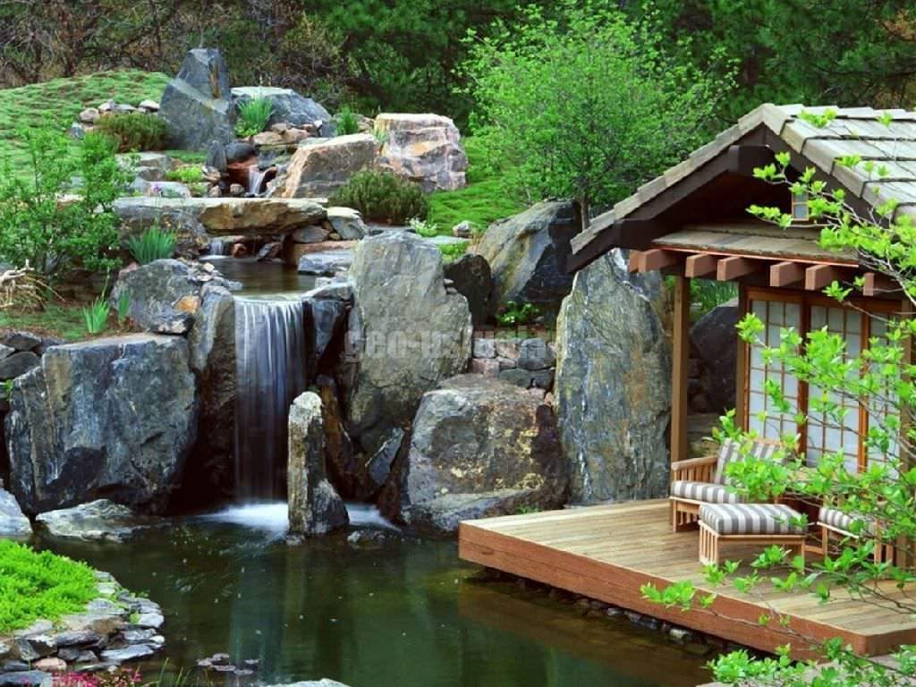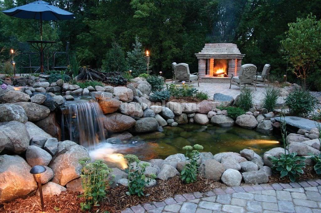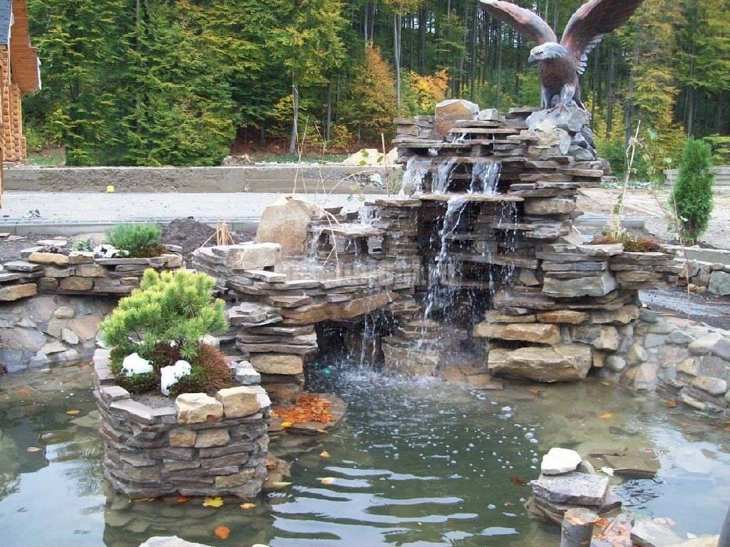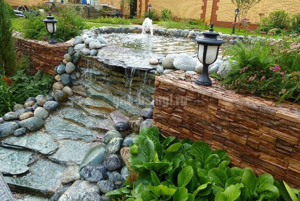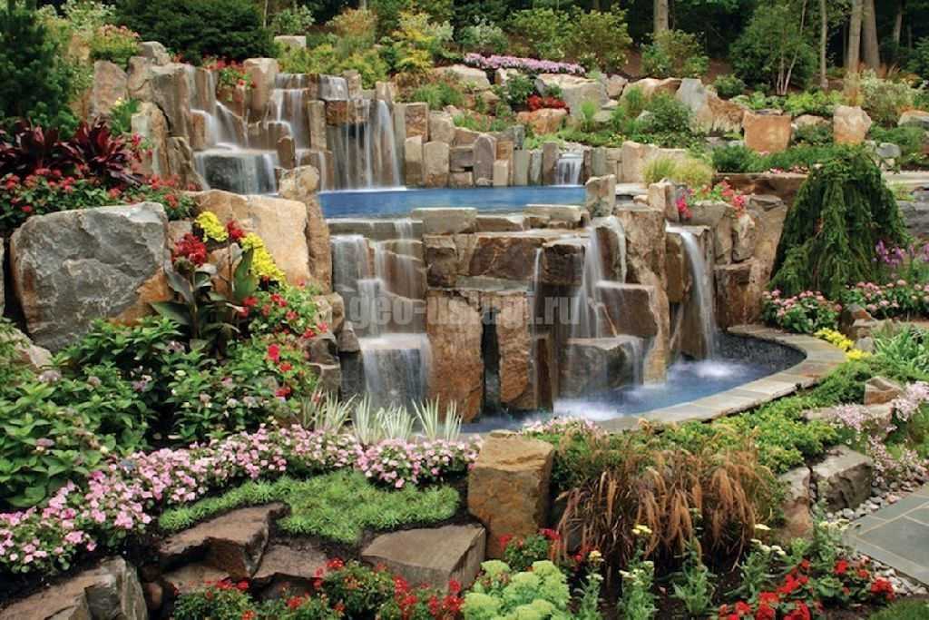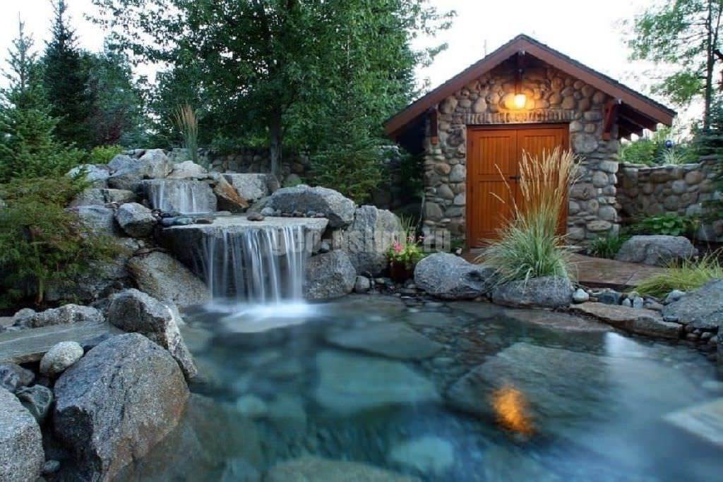 Решите, какой стиль вам ближе: естественный каменный водопад, современный с элементами стекла, или может быть, романтичный водопад с мостиком.