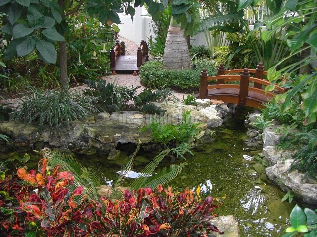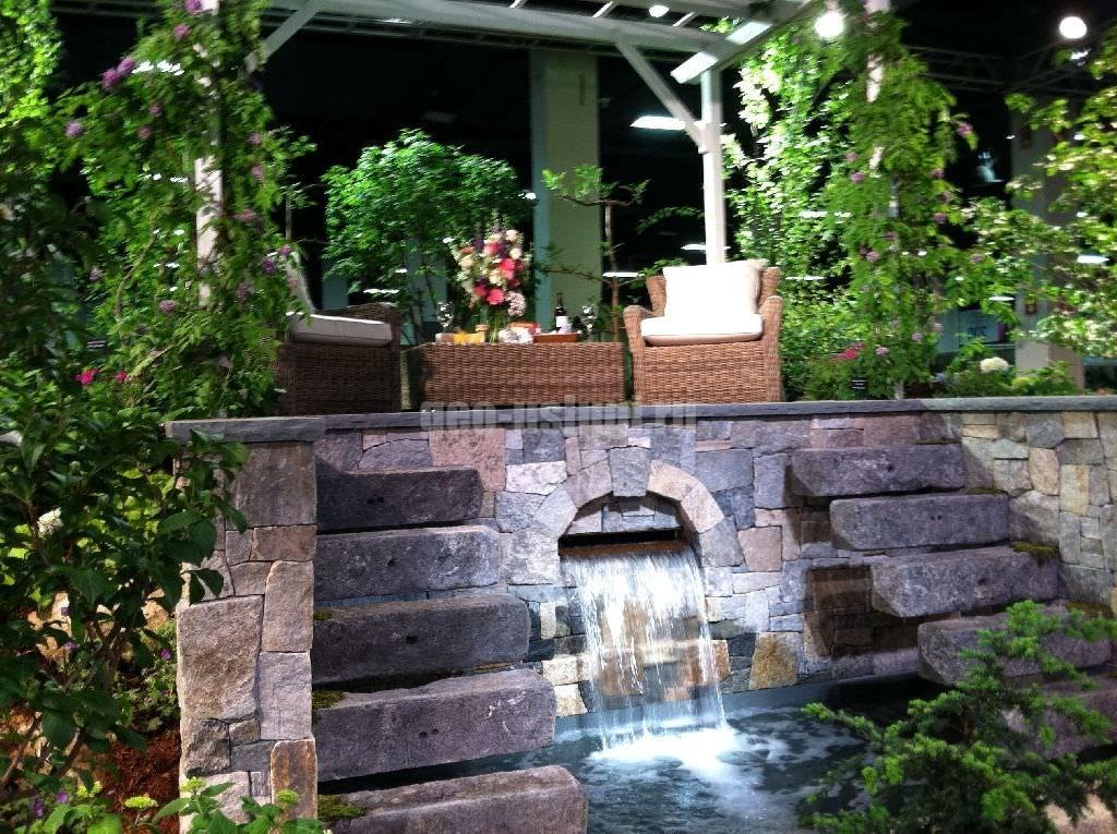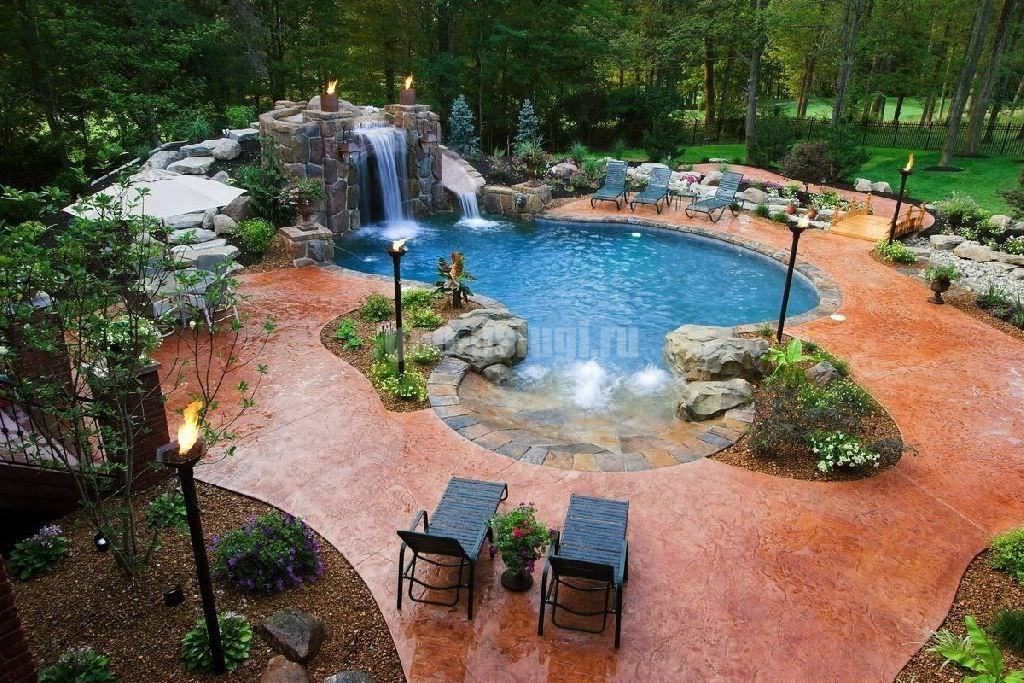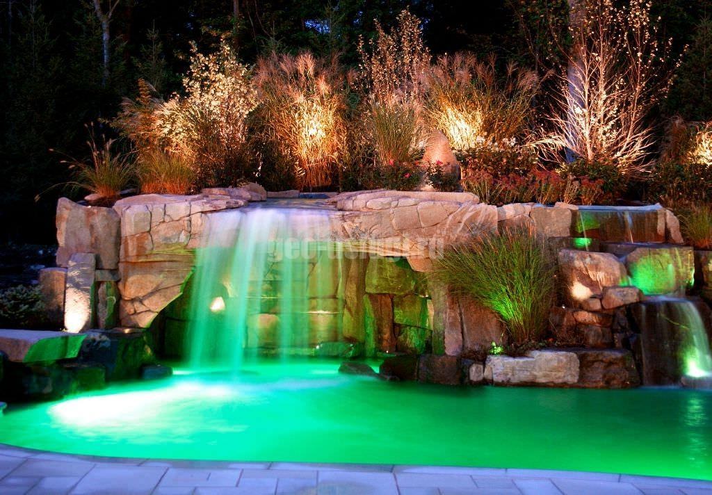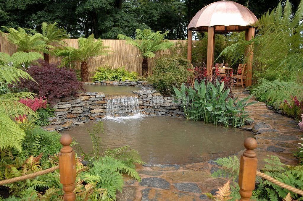 Решите, какой стиль вам ближе: естественный каменный водопад, современный с элементами стекла, или может быть, романтичный водопад с мостиком.