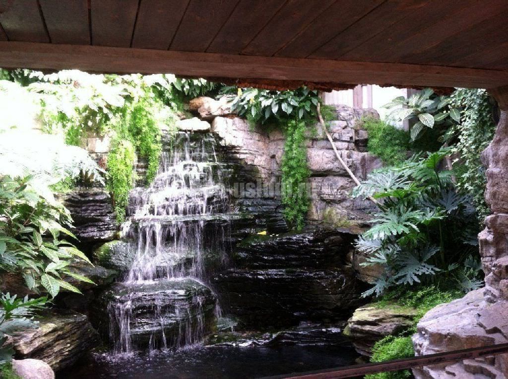 Установите систему циркуляции воды, включая насос, фильтр и систему подачи воды на верхние уровни водопада.