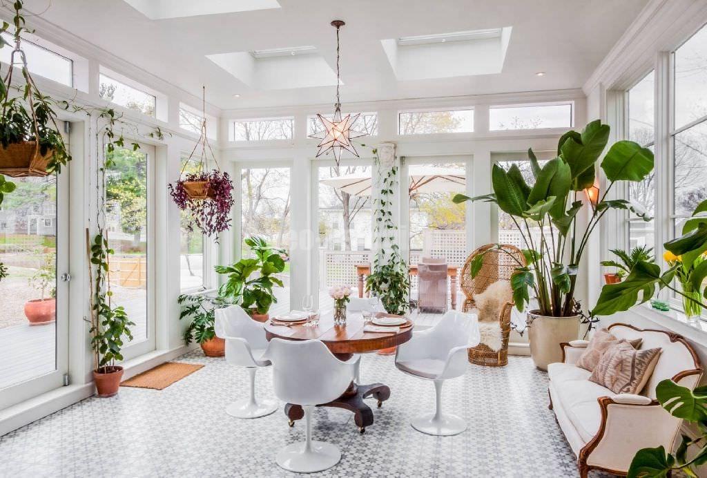 Чтобы зимний сад стал не только местом для растений, но и настоящим уголком уюта, добавьте декоративные элементы. Мягкие подушки на стульях, свечи и элементы декора в стиле скандинавского дизайна придают зимнему саду особый шарм.