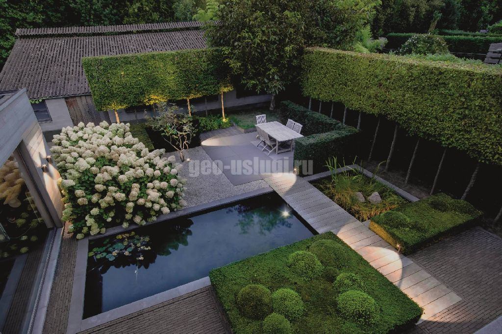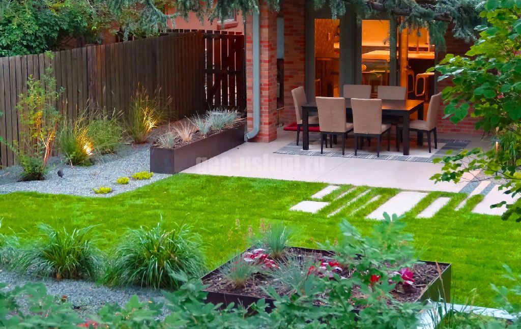 Современный ландшафтный дизайн подразумевает использование минималистичных решений и инновационных материалов. Особенности стиля: